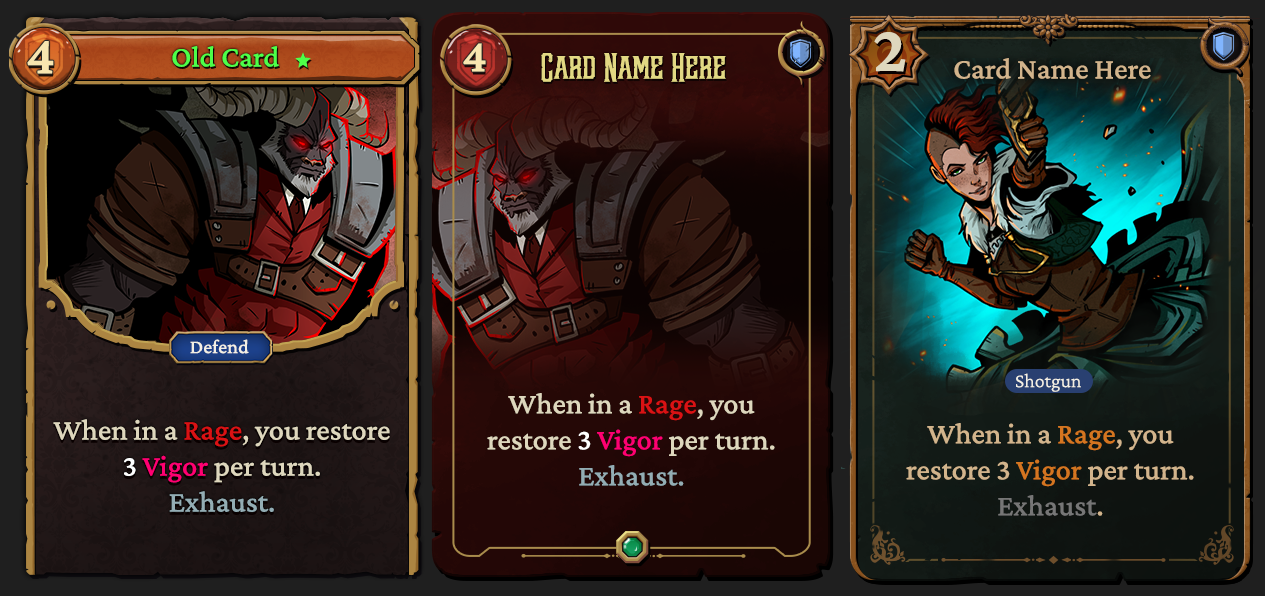 (left) Original Menace from the Deep card. (center) The first iteration for Hunters Moon cards. (right) The final card iteration.