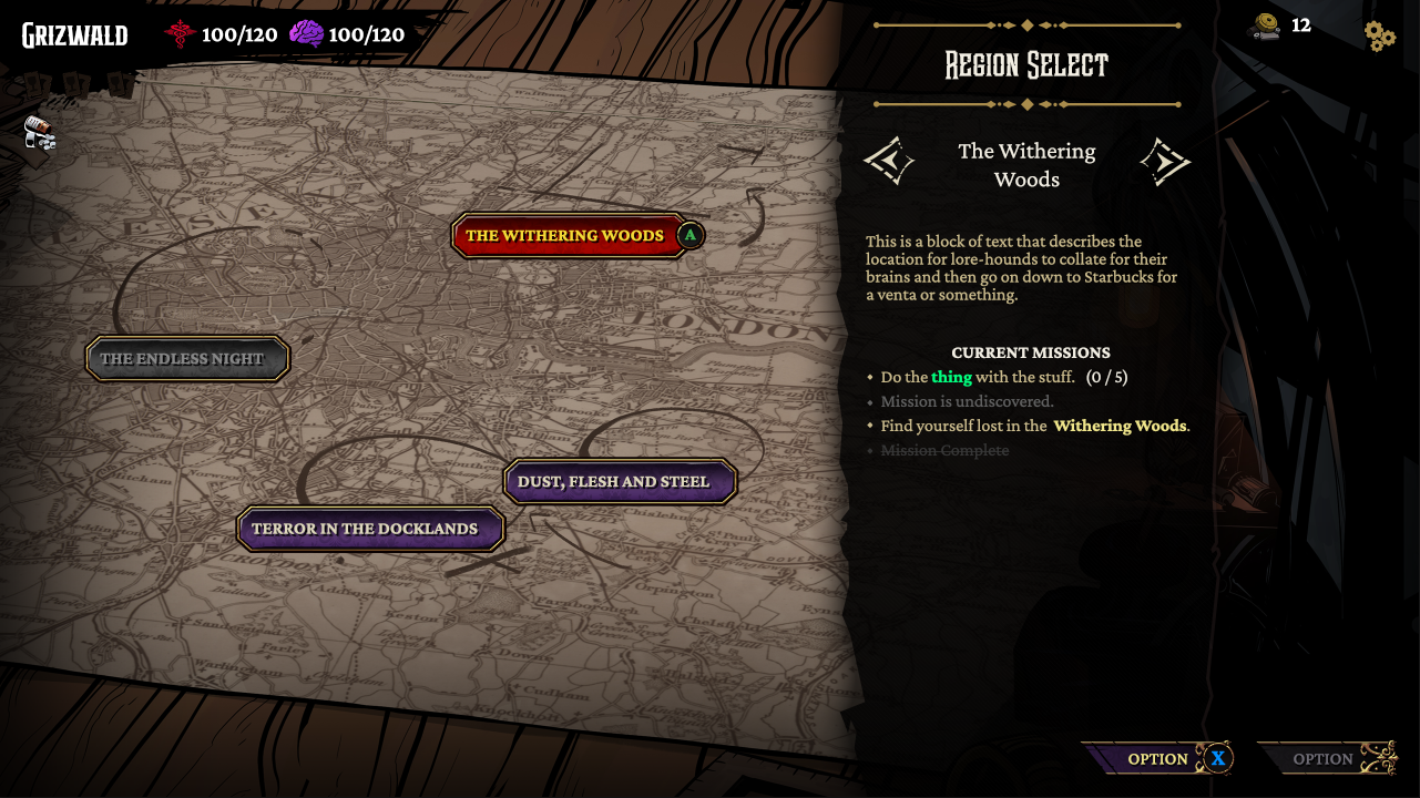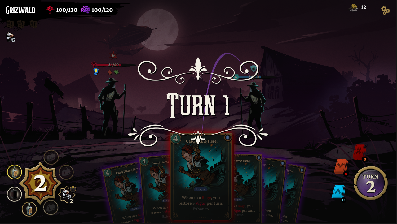 A deckbuilder with a focus on rich narrative and story elements over fail-and-repeat gameplay, Hunter's Moon provides something different in the genre. The Art Director had a very particular art style that needed to be emulated across the entire UI to provide a cohesive theme and mood, and the result is a steampunk adventure with a unique approach to the genre.